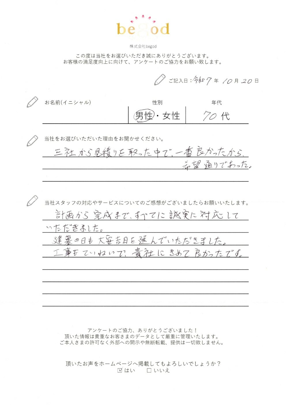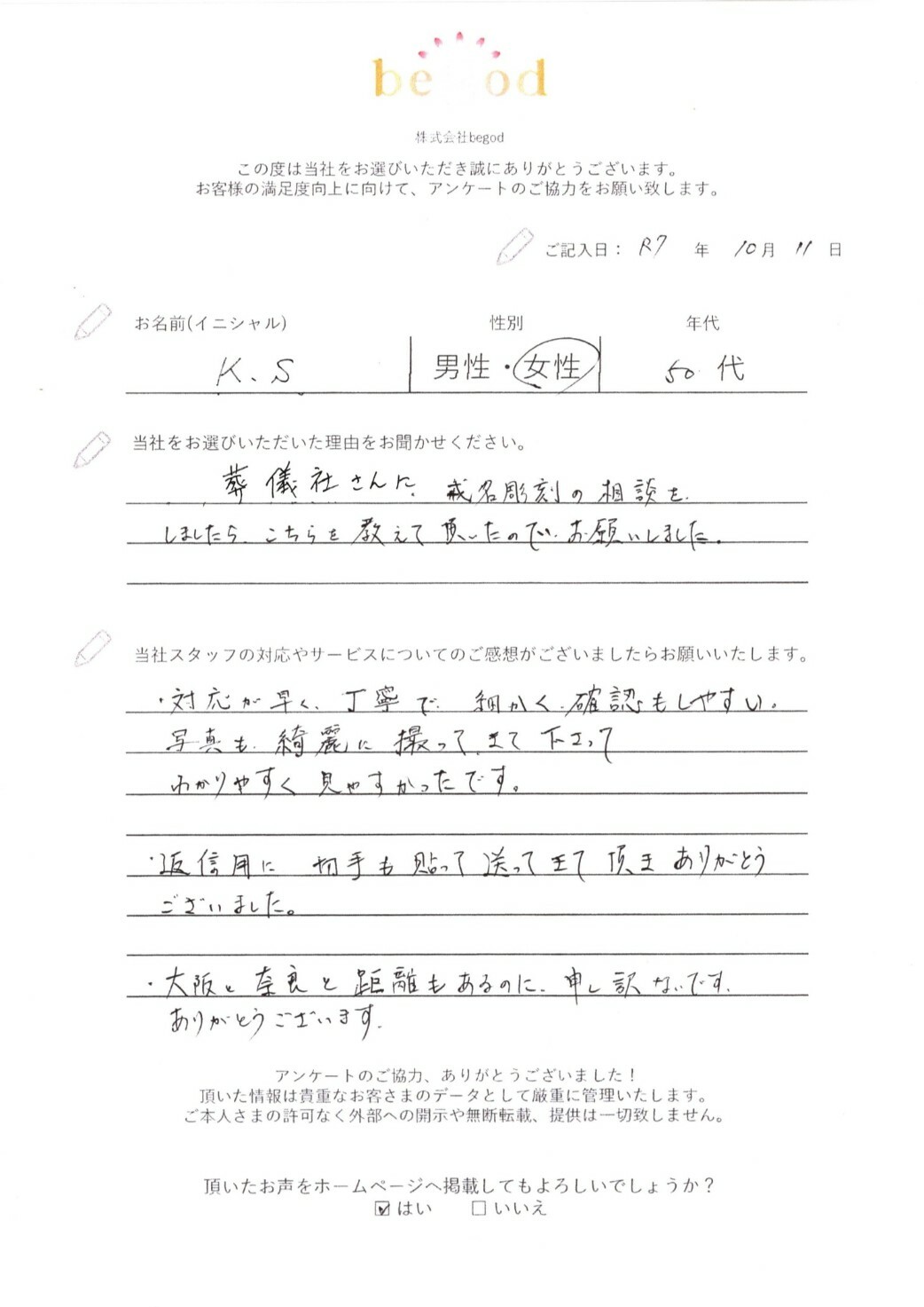 お客様の声|奈良県桜井市でお墓のことなら株式会社begod(ビゴッド)
